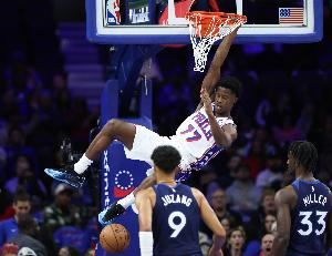 与凯尔特人的揭幕战,世人看到了埃奇库姆的下限。作为防守人,他防了凯尔特人球员12次出手,只让对手投进3球。他与马克西的后场组合偏矮,但他的超强单兵防守能力能与马克西互补。