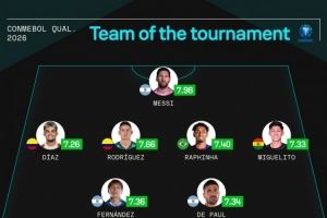 Sofascore本届南美世预赛最佳阵(3241)